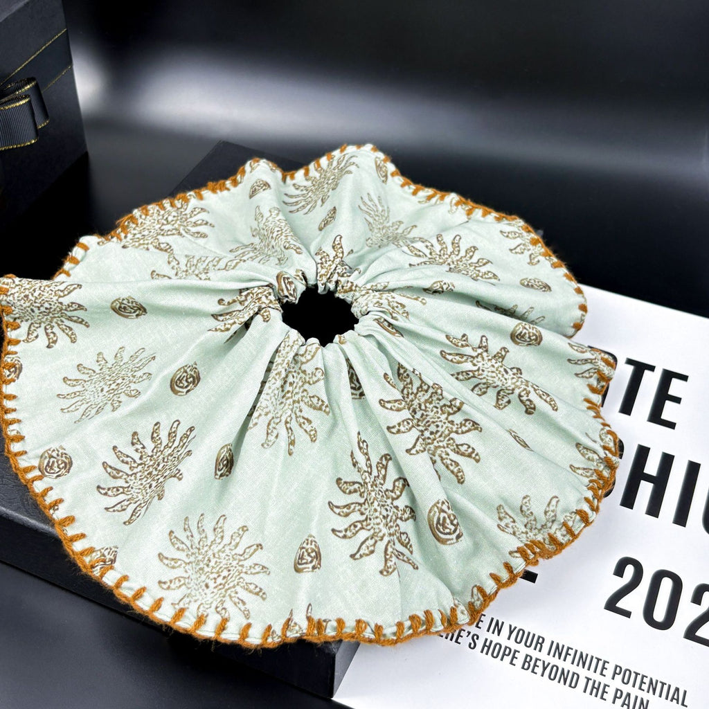 Wrap once for a voluminous low ponytail, twice for a textured topknot, or loop loosely around your wrist as a subtle accessory. For longest wear, hand-wash gently in cool water with mild detergent and air-dry flat. Avoid direct sunlight during drying to preserve color vibrancy. Store flat or loosely rolled — never folded sharply.