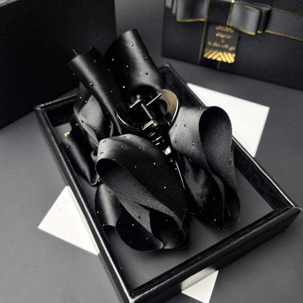 Elevate your everyday style with the Black Satin Starry Sky Claw Clip—a refined, functional hair accessory crafted for modern versatility. Designed to hold medium-to-thick hair securely without slipping, this oversized claw clip combines luxurious texture, subtle celestial detailing, and all-day comfort. Whether you're styling a polished bun, a low chignon, or a relaxed half-up look, it delivers both grip and grace.