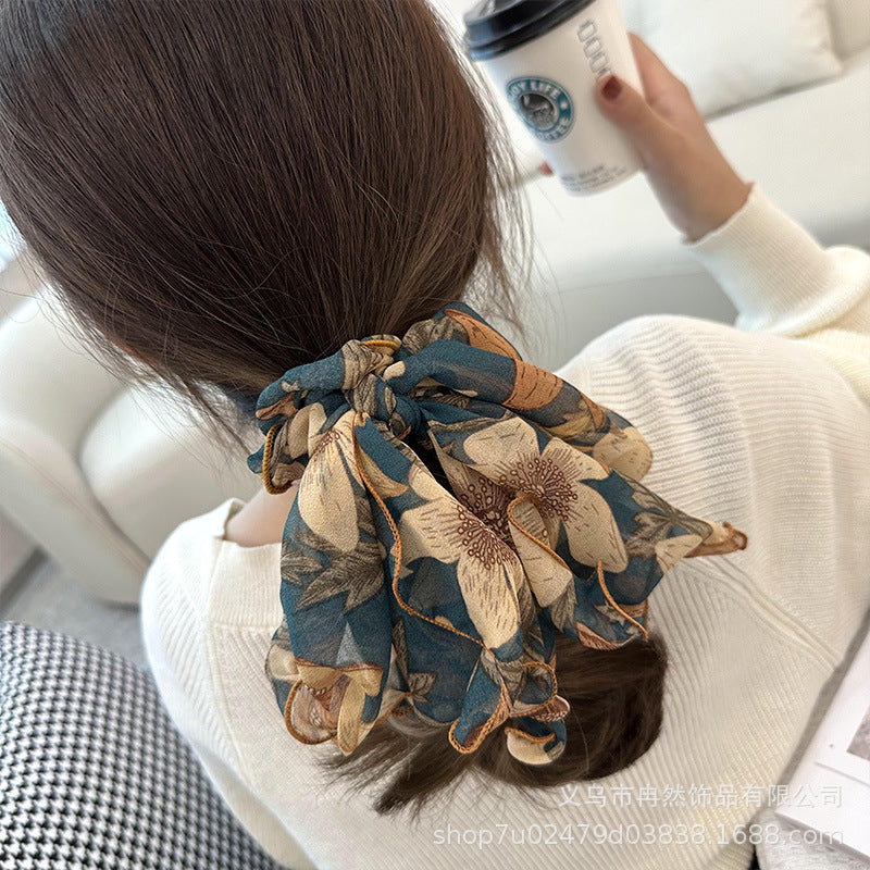 Absolutely. Its elegant texture and subtle pattern make it a charming accessory beyond hair — try it looped twice around your wrist or tied onto a tote bag strap.