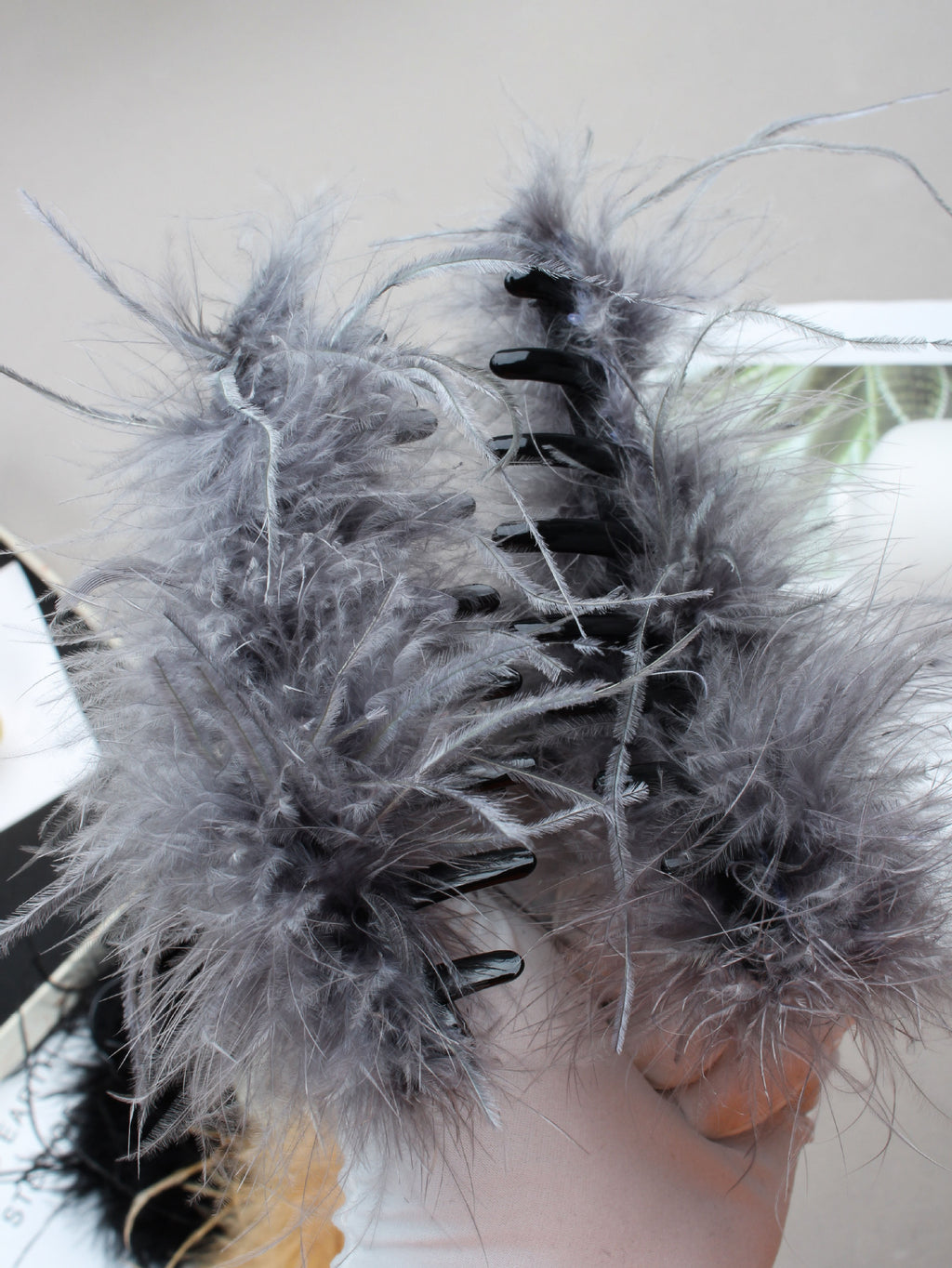 Slide the shark clip into place at the crown or nape for a polished half-up style, or use it to anchor a low chignon. Avoid excessive moisture or direct heat exposure. Gently dust feathers with a soft makeup brush; store flat in its original box away from direct sunlight to preserve texture and color integrity.