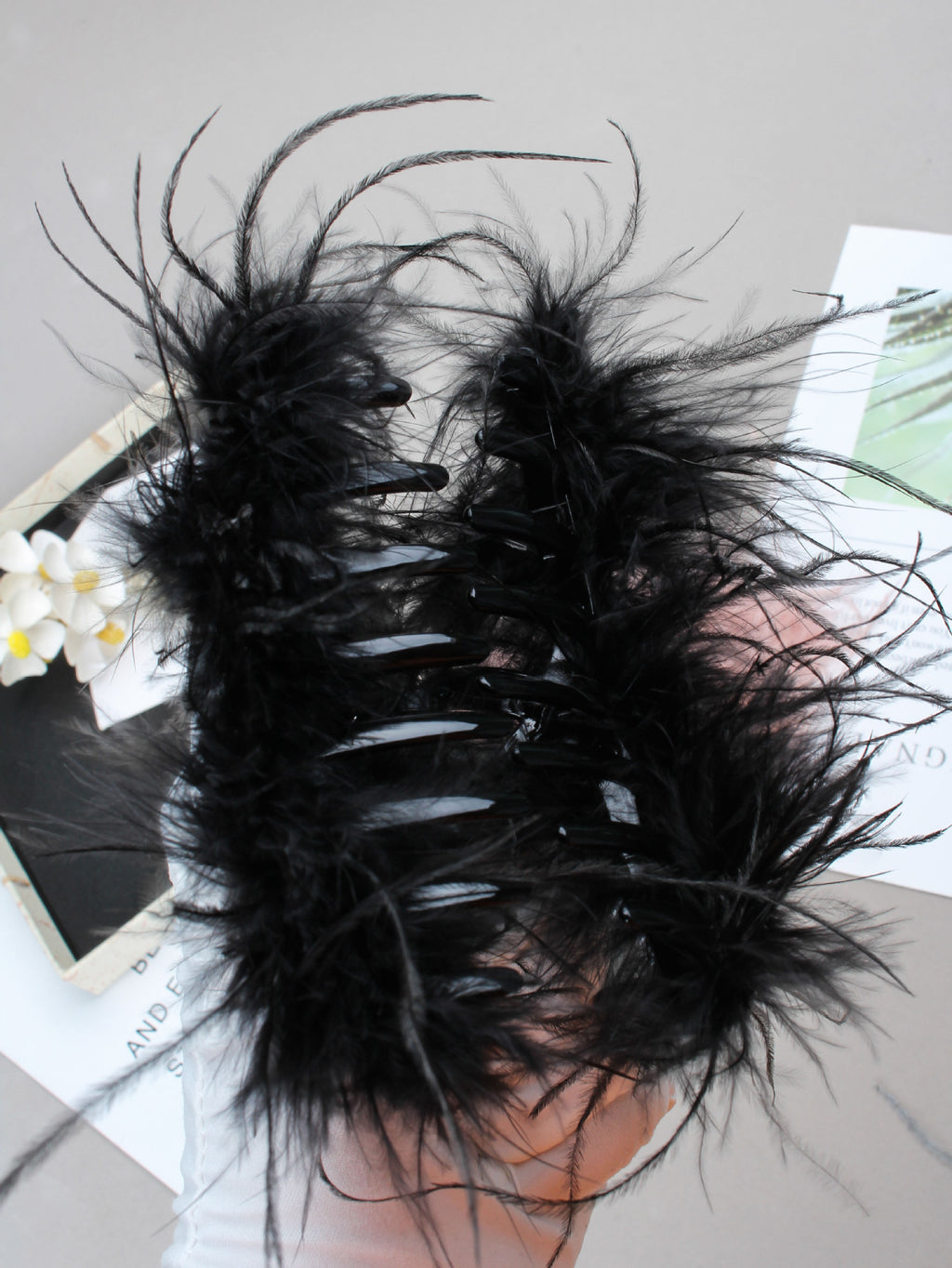 This isn’t just another hair clip — it’s a tactile expression of quiet elegance. Each piece is individually crafted by skilled artisans using time-honored techniques, ensuring subtle variations that speak to its handmade nature. The black feathers are carefully selected for density and sheen, while the mink fur adds a luxurious, dimensional contrast along the clip’s upper curve. The underlying shark clip is made from sturdy, nickel-free metal with gentle spring tension — secure on medium-to-thick hair without pulling or discomfort. Designed for women who appreciate understated charm and intentional details, it transitions effortlessly from daytime errands to evening gatherings.