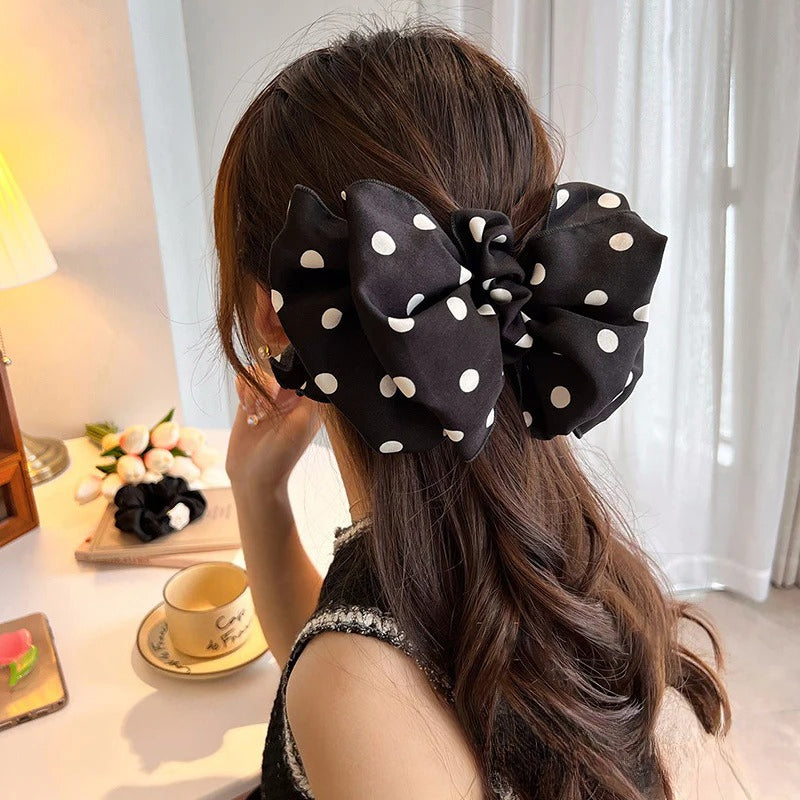 Meet the Polka Dot Satin Hair Clip — a refined, minimalist take on retro charm. Inspired by contemporary Korean styling trends and timeless vintage aesthetics, this hair accessory adds effortless sophistication to any look. Whether you're securing a low ponytail, framing a soft updo, or adding subtle flair to casual days, its balanced weight and smooth satin finish make it as comfortable as it is eye-catching.