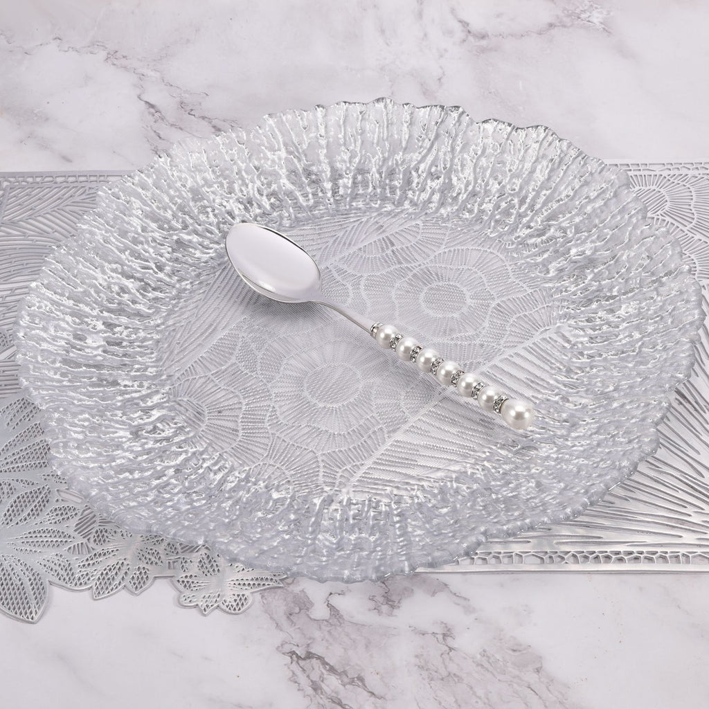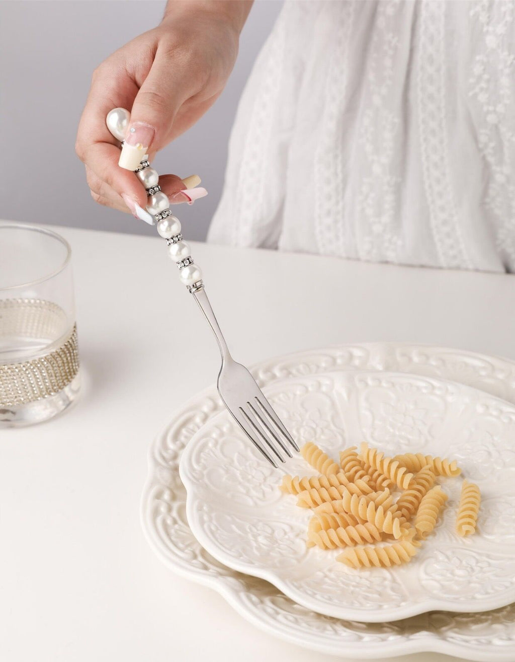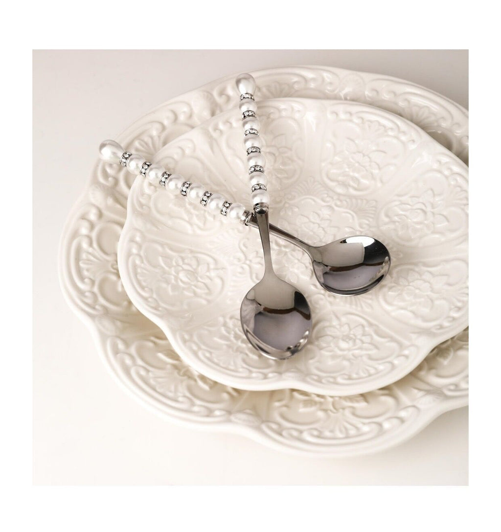 - Delicate pearl-style embellishments on each handle — elegant without being ostentatious