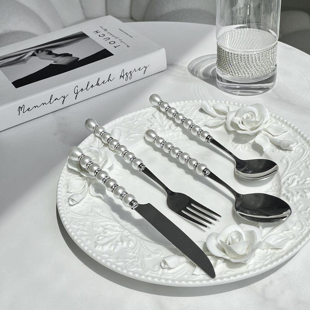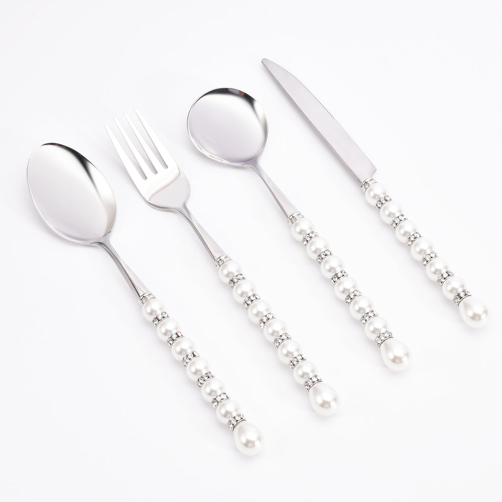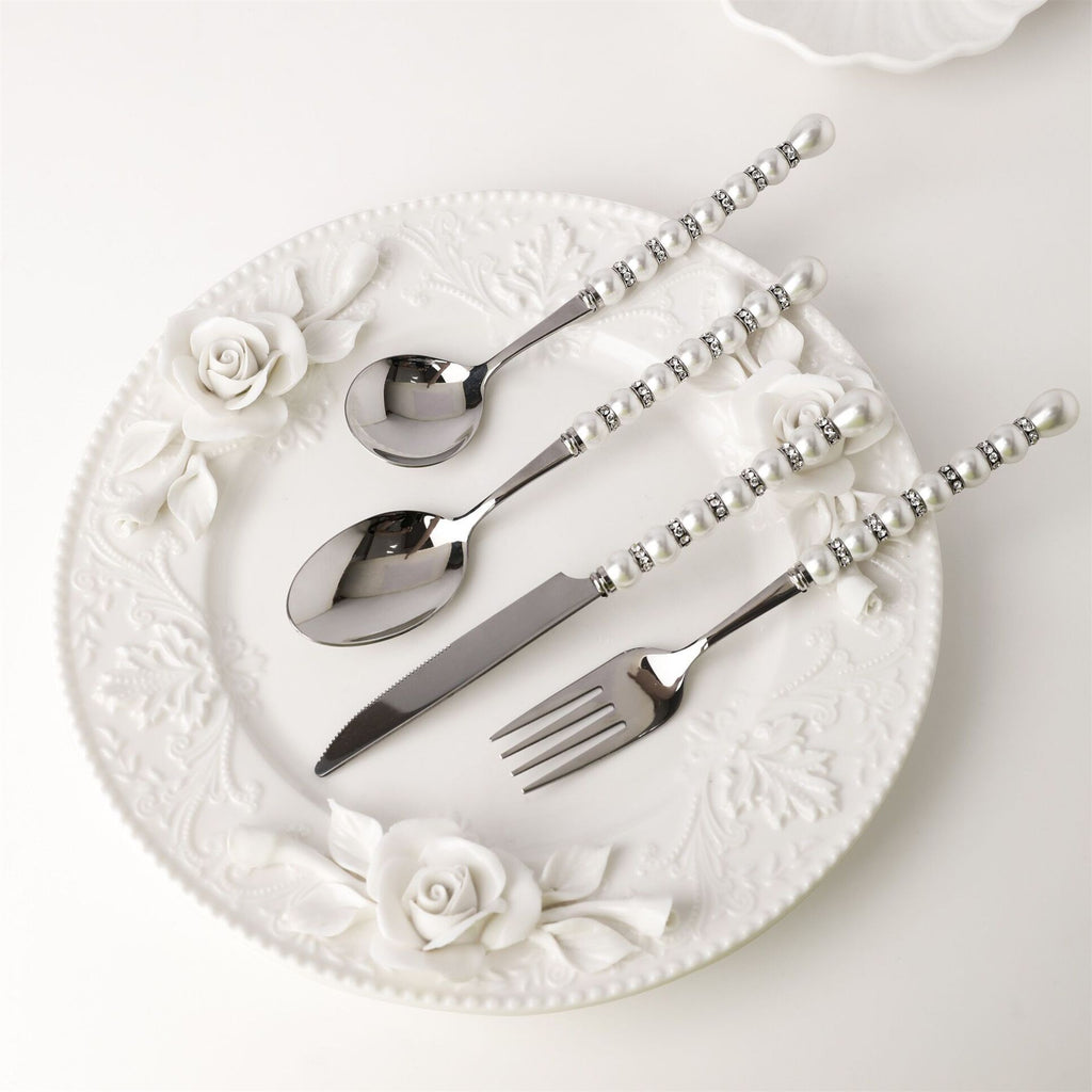 This cutlery set embodies the 'quiet luxury' aesthetic — clean lines, restrained ornamentation, and exceptional material integrity. The pearl detailing is not applied stone but precision-crafted stainless steel elements with a soft, luminous surface texture that evokes the organic sheen of cultured pearls. Each piece maintains ergonomic balance and a refined weight distribution, making them equally suited to casual weeknight dinners and formal celebrations. The mirror polish resists smudging and fingerprints while enhancing light reflection for a consistently polished appearance. Unlike plated alternatives, the solid 304 stainless construction ensures long-term durability and resistance to pitting or discoloration, even with frequent use and cleaning.