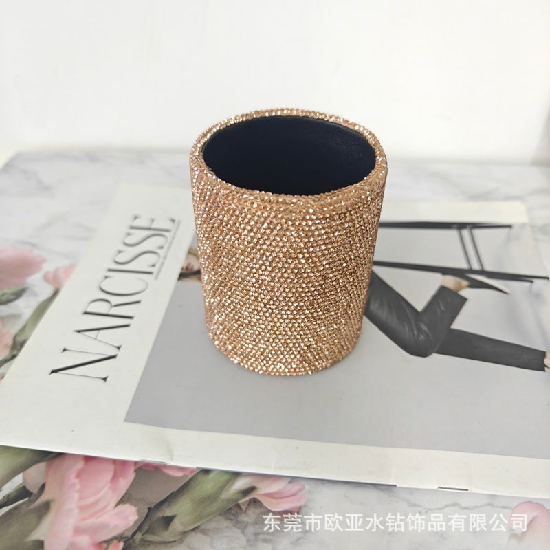 Elevate your workspace with the SUUMEE Rhinestone-Embellished Round Leather Desk Organizer—a thoughtfully designed, minimalist yet eye-catching accent piece that blends practicality with refined style. Crafted from premium genuine leather and accented with precisely set rhinestones, it brings a touch of quiet luxury to desks, studio shelves, or vanity tables.
