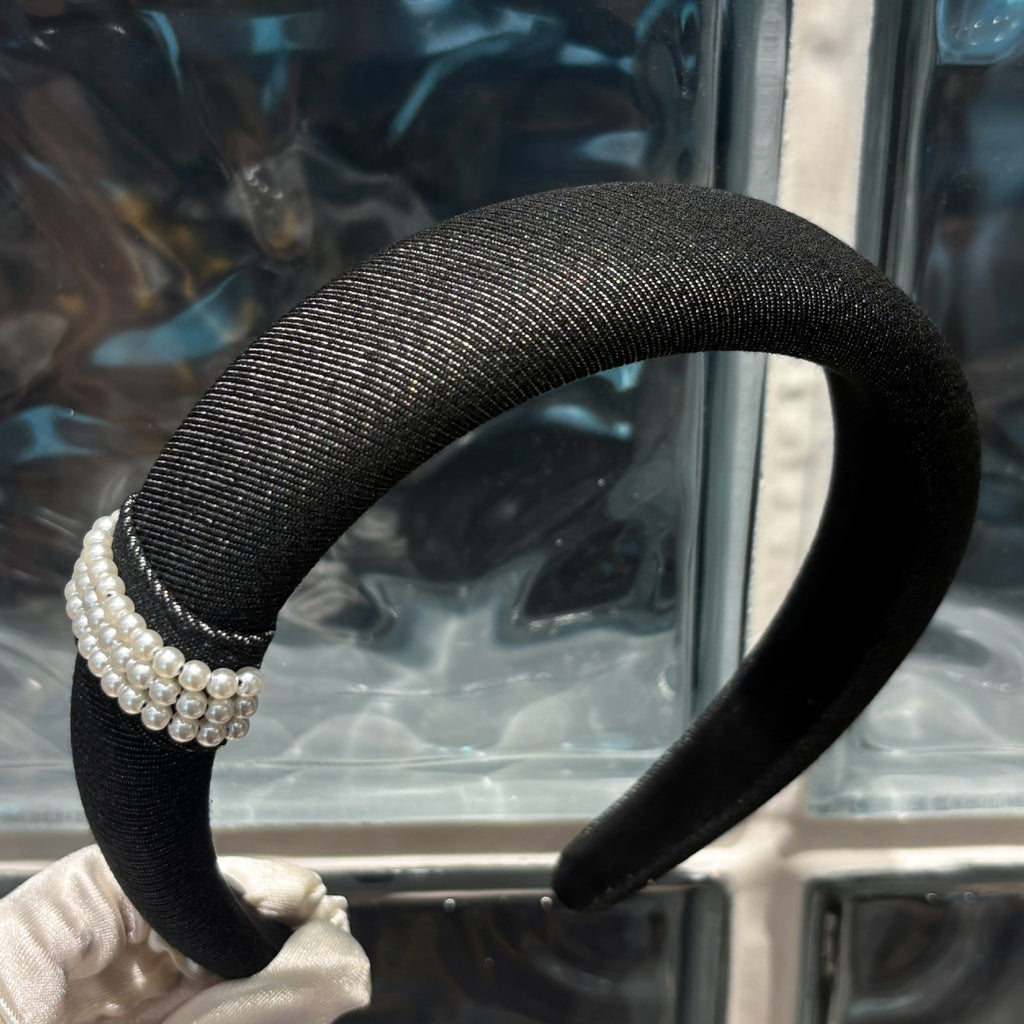 This headband reimagines classic denim as a canvas for refined detail. Unlike printed or embroidered alternatives, each pearl is individually secured by hand, ensuring durability and dimensional charm. The denim base is tightly woven for structure yet supple enough to conform gently to the head’s natural shape. The result is a piece that feels intentional, not incidental — equally at home with a silk camisole and tailored blazer as it is with a weekend sweater and jeans. It’s designed to flatter a range of face shapes and enhance the appearance of height and balance in the silhouette — a subtle but meaningful styling advantage.