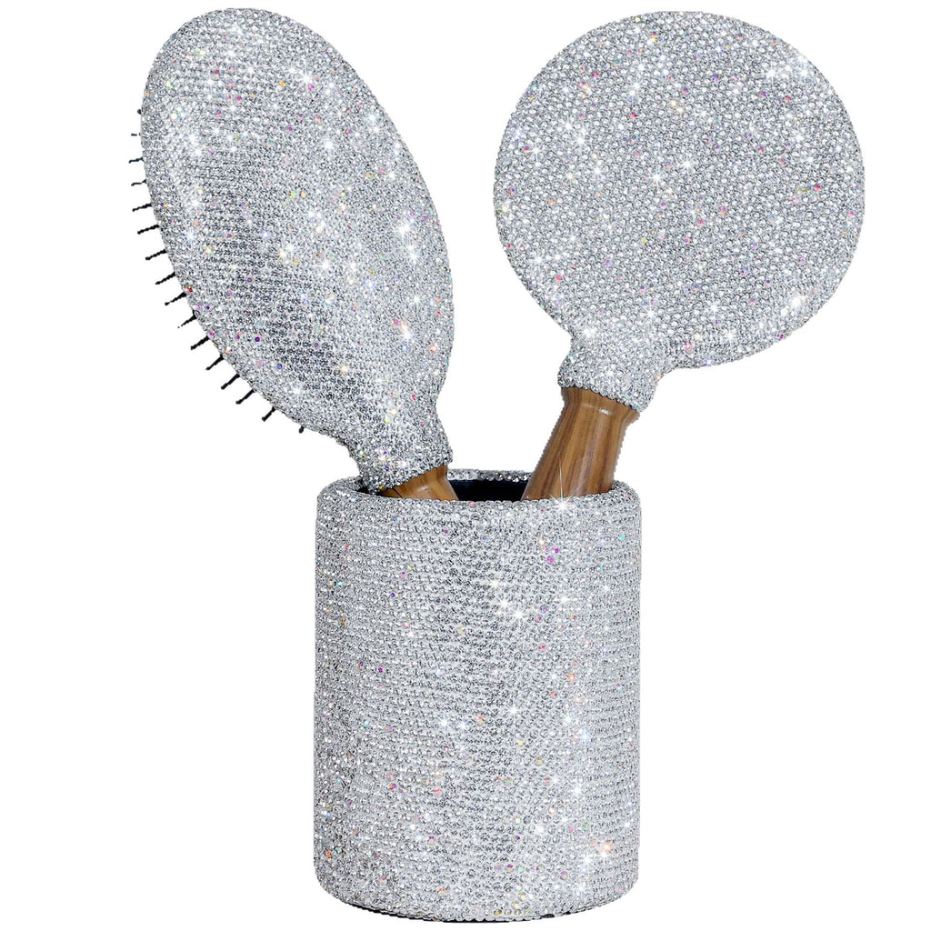 - Diamond-accented ergonomic hairbrush with soft, rounded bristles for gentle scalp stimulation and tangle-free styling
