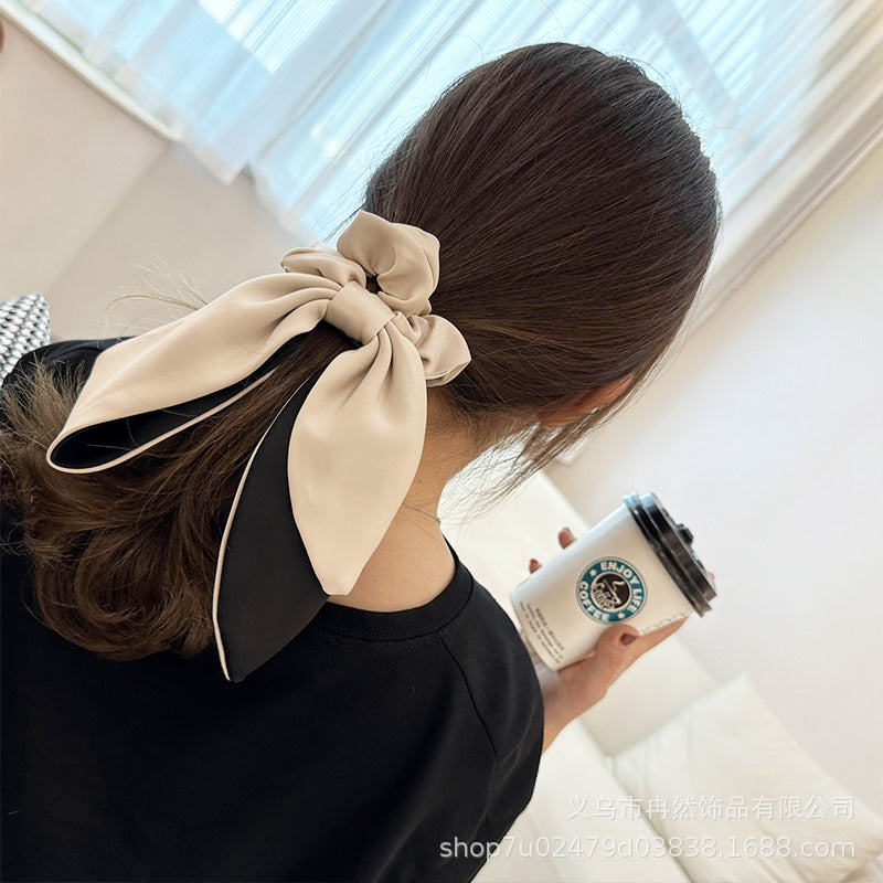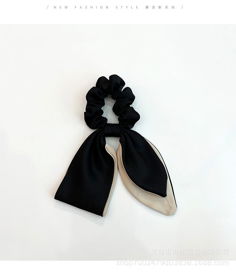 Slide onto gathered hair like a standard scrunchie — position the bow at the front or side for intentional styling. To preserve shape and color, hand-wash gently in cool water with mild detergent, then air-dry flat. Avoid direct sunlight during drying and store flat or loosely rolled to maintain bow structure.