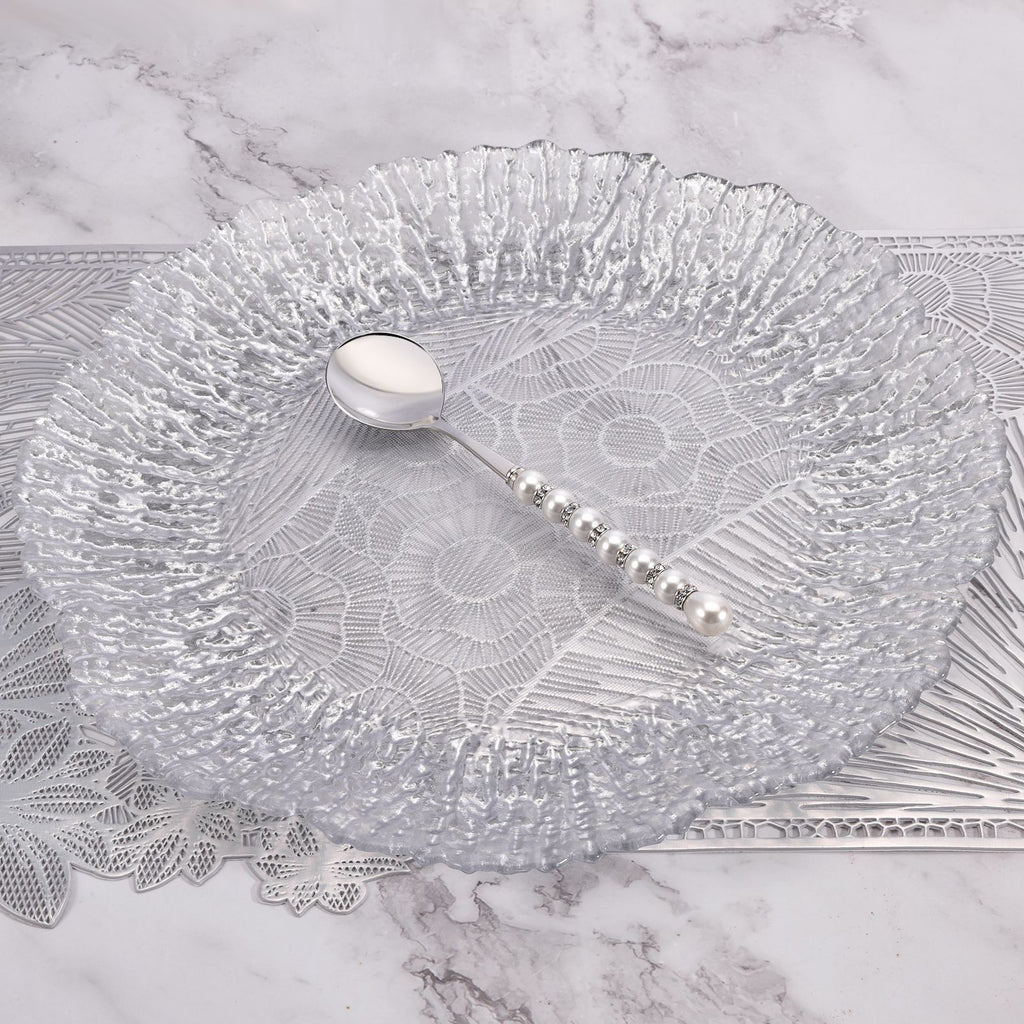 - Delicate pearl-style embellishments on each handle — elegant without being ostentatious